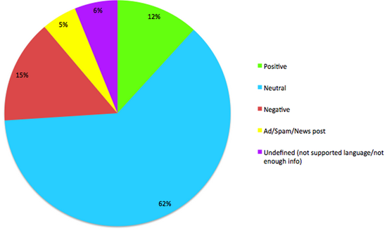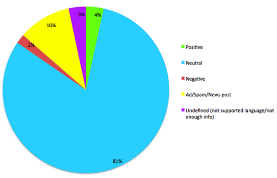 Here are specific findings from our data:Charting the first 3 days, with negative sentiment higher than positive, and most of the conversation resting in neutral.