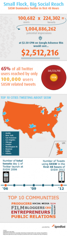 Spredfast, a social media management company based in Austin, used social data from the PeopleBrowsr Datamine to create compelling infographics about the impact of this year’s South By Southwest Interactive festival.