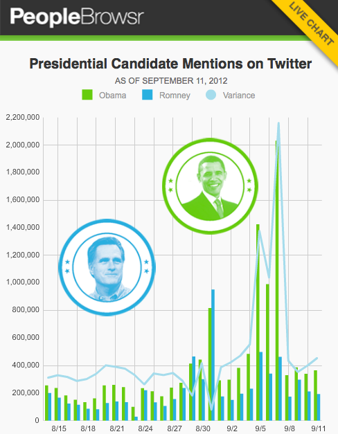 Just in time for election season, PeopleBrowsr is joining forces with iCharts, a cloud-based interactive charting system, to provide comprehensive statistical visualizations of real-time political sentiment and trends.
