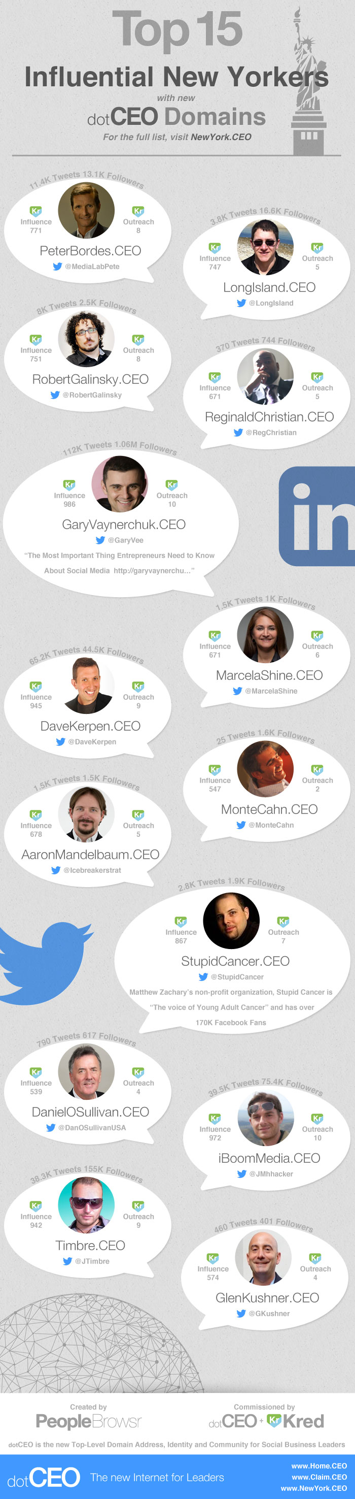 The 15 influential New Yorkers profiled in our infographic lead the way on Social Media.